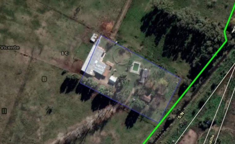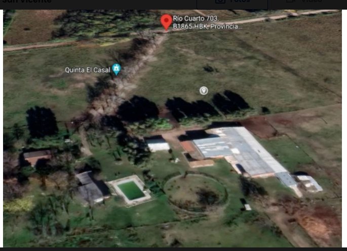 Venta de Campo de 24 hectáreas Venta de 24 hectáreas con distintas distribuciones de construcción. Superficie cubierta total de 1650 m2 Superficie de predio : 240.000 m2 - Casa Principal Superficie cubierta 10 x 10 total 100 m2 2 habitaciones cocina comedor baño. Pileta de 10 x 12 Quincho o salón de eventos de 8 x 15 - 2 Casas para caseros. Superficie total de 150 m2 Una casa con cocina, comedor de dos Habitaciones mas altillo Segunda Casa de una habitación mas cocina mas comedor. - Galpones y caballerizas Superficie cubierta de 1280 m2 - 24 box para caballos, 15 x 60 900 m2 - Galpón 15 x 20 300 m2. - Galpón 20 x 4 80 m2 Todo el Campo tiene alumbrado exterior - Luz trifásica, agua de napa filtrada , gas envasado Juegos para chicos 1 Cancha de futbol. Alambrado perimetral de 6 hilos. Wifi Cámaras de seguridad. - Ubicación y acceso El campo Casal de 24 hectáreas se encuentra a 5 km del acceso a ruta 6 a 4 km de la laguna san Vicente y a 4 km del centro de san Vicente . Todo el campo esta adaptado para el desarrollo de cría de caballos, por eso hay 24 box o establos, son muy amplios y muy confortables para el desarrollo de esta actividad. tiene diferentes arbolas con variadas especies, sectores de potreros para pastoreo de animales. Todas las medidas son aproximadas y se deberán verificar con la escritura traslativa de dominio y el estado parcelario.