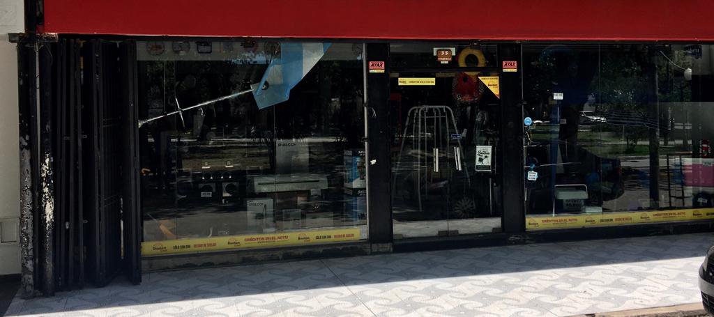 EL FRENTE DEL LOCAL ESTA COMPUESTO POR UNA LOSA DE 9.44 X 18.40 = 173 M2 APROX. CERRAMENTO DE VIDRIO LAMINADO CON PUERTA DE BLINDEX Y REJAS, ACCESO PARA ESCALERA Y POSIBILIDAD DE CONSTRUIR EL PLANTA ALTA.